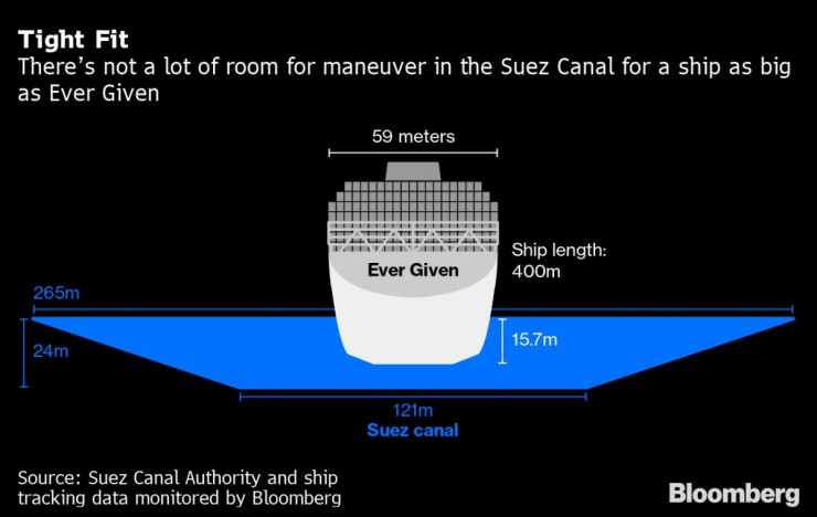 Дългият 400 метра кораб Ever Given продължава да е заседнал почти напречно на един от най-важните маршрути за морския трафик в света и няма изгледи ситуацията да се подобри в скоро време. Очаква се работата по преместването на кораба да продължи поне до следващата сряда – значително повече от очакваните първоначално само няколко дни. Според източници пред Bloomberg този период дори може да се окаже дори още по-дълъг.