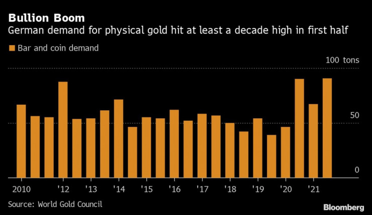 Любовта на германците към златото датира още от хиперинфлацията по време на Ваймарската република отпреди век. Миналия месец отварянето на икономиката след продължителните блокади отново тласна увеличението на цените до най-високото му равнище от над десетилетие. Отрицателните лихви в Европа също правят активите без доходност много привлекателни, коментира Шерер.