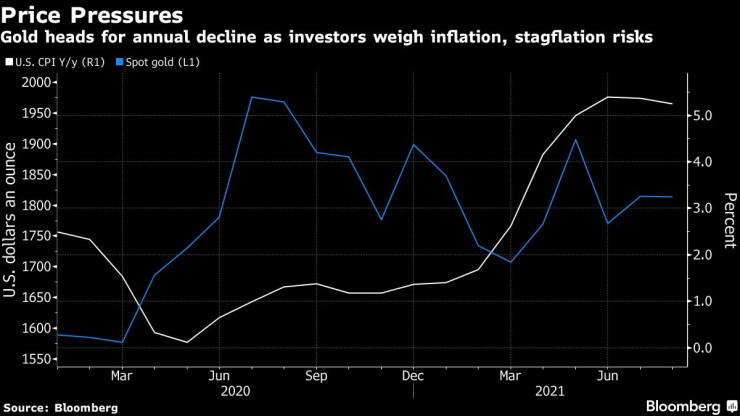 Исторически на златото винаги се е гледало като на привлекателна инвестиция, когато инфлацията се забързва, като цената му се утроява до края на 70-те. Но то също така е и чувствително към движението на лихвените проценти, а инвеститорите се обзалагат, че скоро ще започне ограничаване на стимулите от централните банки и увеличаване на разходите по вземания. А всичко това намалява интереса към притежаване на злато.