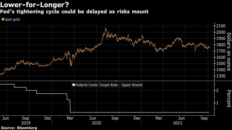 Досега управителят на Федералния резерв Джером Пауъл и негови колеги от ЕЦБ, Японската и Английската централни банки също изразиха предпазлив оптимизъм, че проблемите по веригата на доставките ще са временни. Американската институция се готви да започне намаляване на покупките си на облигации още от следващия месец, а от ръководството сигнализират и за нагласи за увеличаване на лихвите още от следващата година, което допълнително намалява привлекателността на златото.