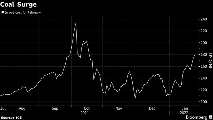 Цената на европейските въглища расте. Графика: Bloomberg