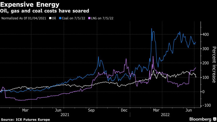 Поскъпването на петрол, втечнен природен газ и въглища. Графика: Bloomberg