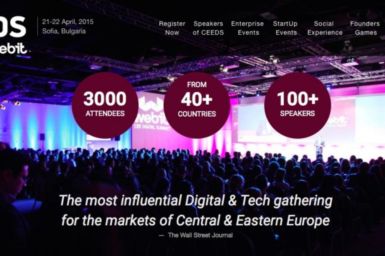 За седма поредна година София ще бъде домакин на CEEDS by Webit – събитието за дигиталните, технологични и медиа/рекламни пазари със специален фокус върху Централна и Източна Европа. На 21-22 април тази година то ще събере в столицата над 3000 души от 40 държави, съобщават организаторите.