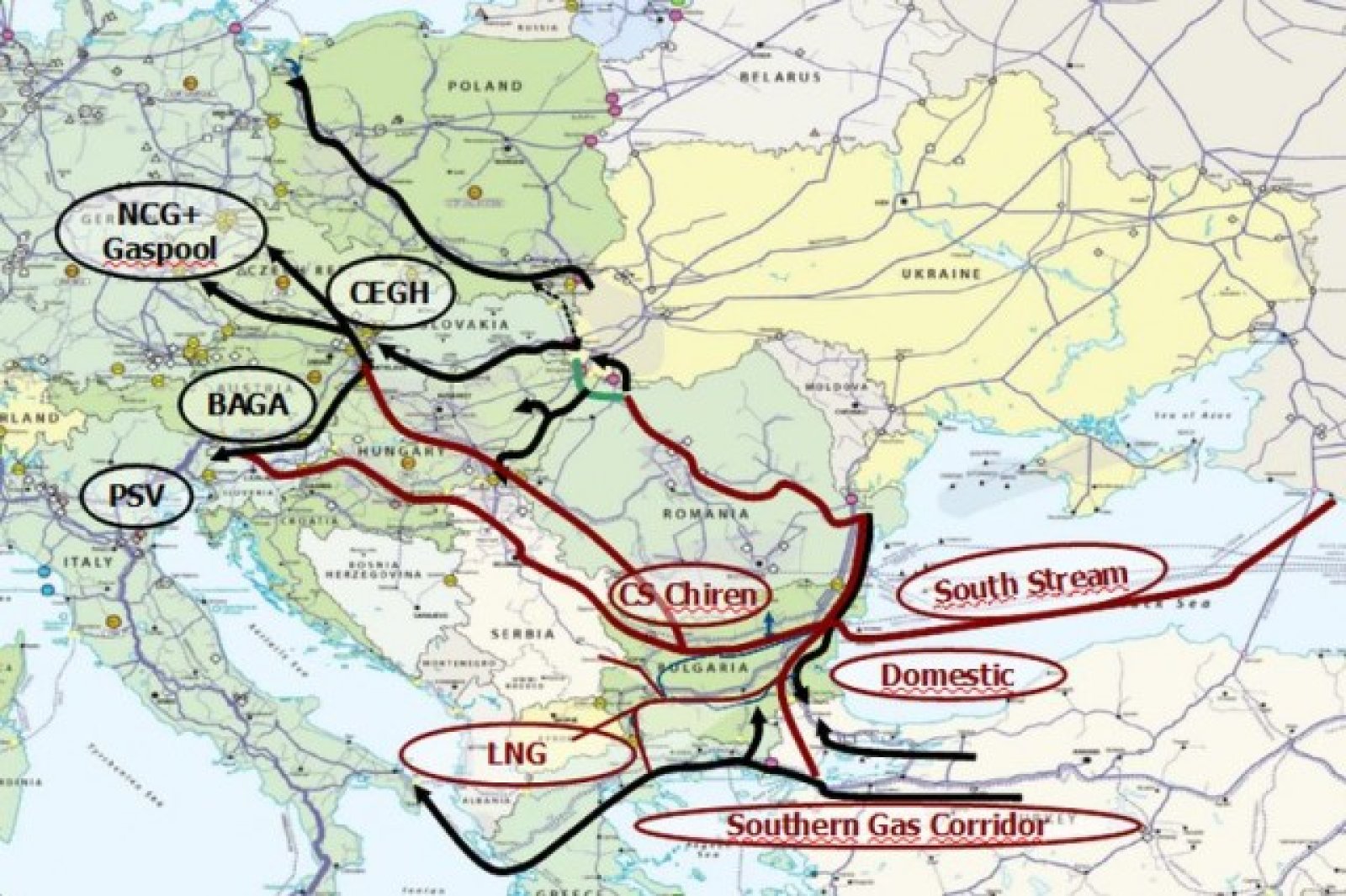 Освен от "Южен поток", през България може да се разпределя и синьо гориво от терминалите за втечнен газ в Гърция, от местен добив и от газовите връзки със съседните страни.