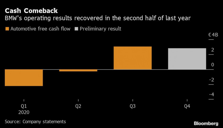 Баварският автомобилопроизводител с емблематичен статут в Западна Европа BMW AG е генерирал по-големи парични потоци от очакваното през миналата година. С това компанията се присъединява към германския си конкурент Volkswagen с оптимистичните си предварителни данни за представянето си на фона на продължаващото възстановяване, съобщава Bloomberg.