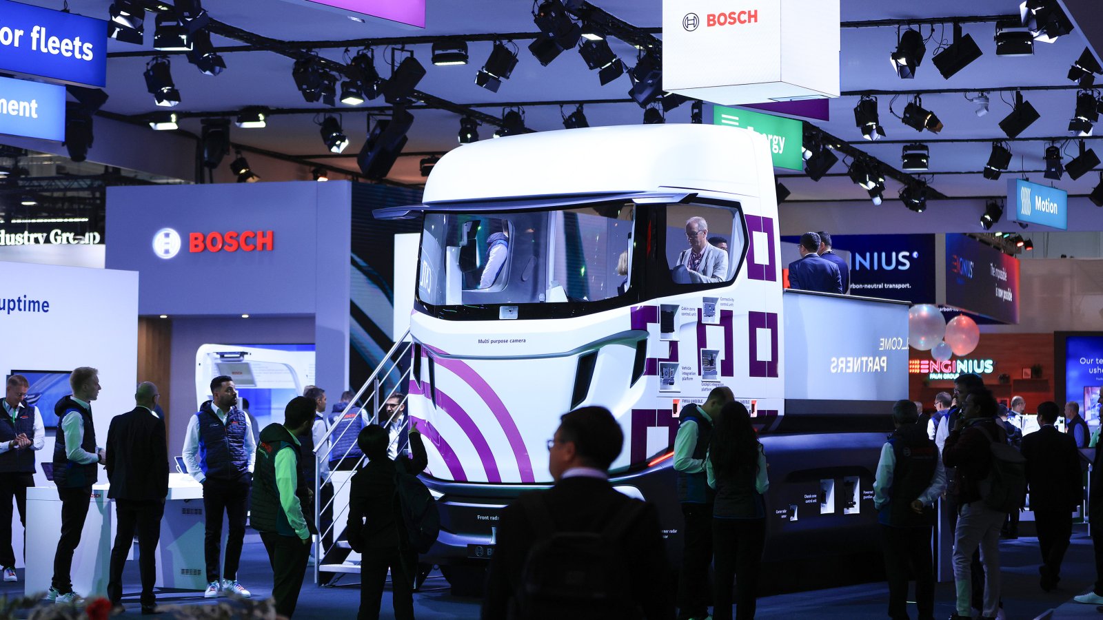 Посетителите разглеждат приложения за камиони на щанда на Robert Bosch GmbH на транспортния панаир IAA в Хановер, Германия. Изложението за търговски превозни средства продължава до 22 септември.