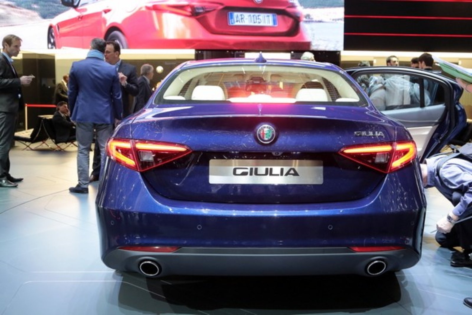 Giulia се появи пред публика още по време на изложбата във Франкфурт през септември миналата година, но тогава бе анонсиран единствено върховият вариант Giulia Quadrifoglio Verde (QV). Този модел се задвижва от 2,9-литров V6 двигател с двойно турбо и мощност от 510 к.с.