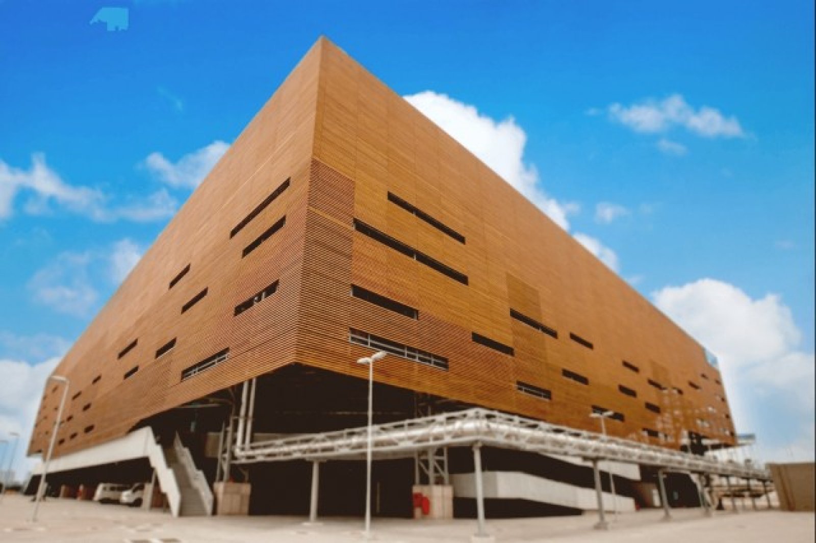 Залата е направена от по-малки модулни части, които са свързани. Когато игрите приключат, тези части - включително покривът, панелите от фасадата и вертикалните колони, които поддържат залата, ще бъдат разглобени, подредени и пренесени в трите квартала.