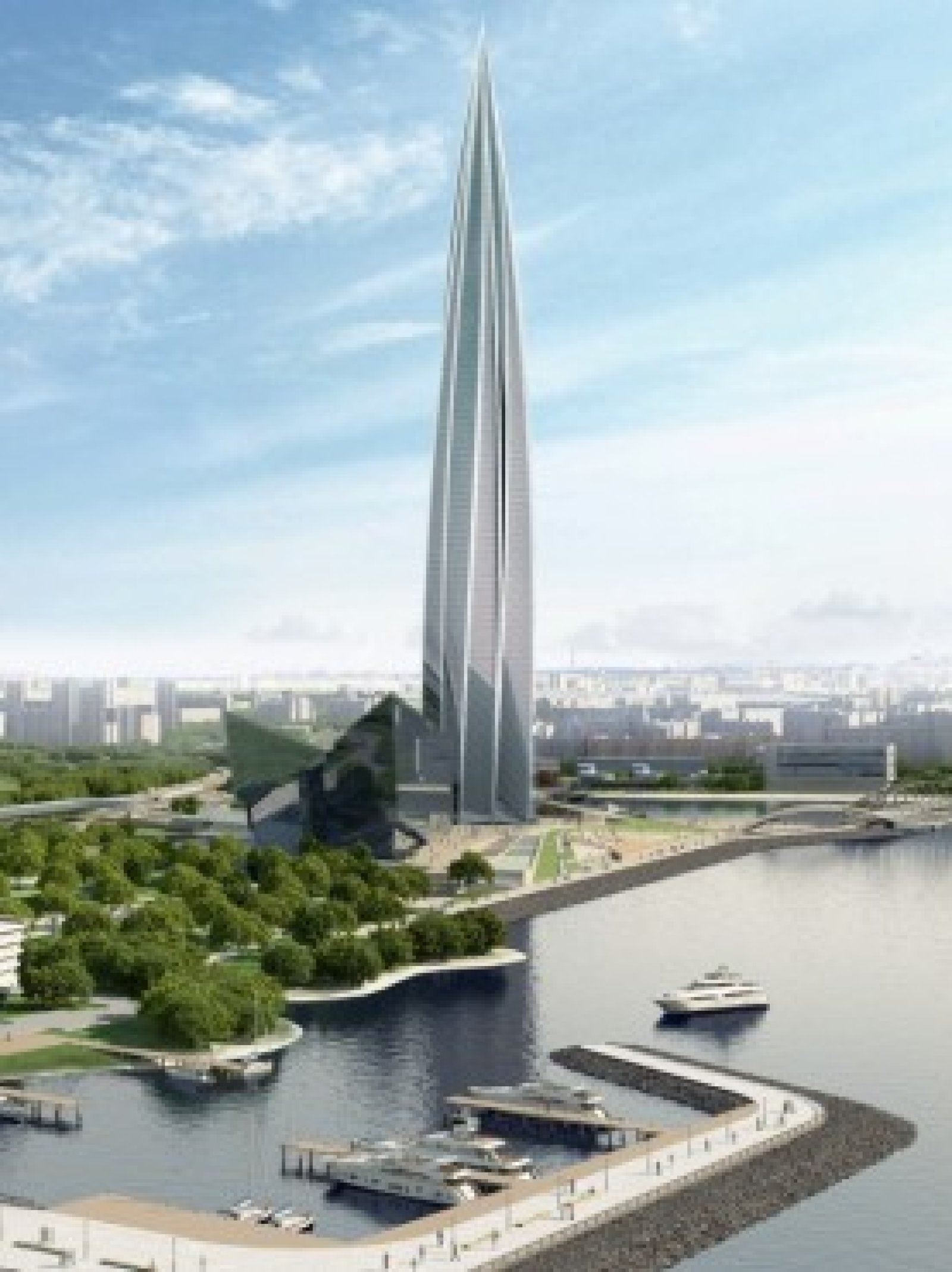 Голямата й височина е компенсирана от по-ниска сграда със смесени функции с 260-метрова фасада. Жилищните и търговските площи ще заемат височина до 360 метра, а над тях ще има наблюдателна платформа и ресторант, които ще предлагат спиращи дъха гледки към Финския залив.
