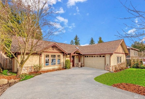 "Великолепие в Западен Белвю! Този очарователен занаятчийски дом, възстановен през 2001 г., има огромна всекидневна, която е перфектна за забавление! Той се гордее с голям таван от борово дърво, а невероятна кленова кухня с гранитен плот примамва готвачите. Главната спалня разполага със собствена баня с душ. Твърда дървесина, много капандури и естествена светлина. Прецизна постройка, голям ограден двор, хидромасажна вана, навес. Много добре поддържан! И разполага с голямо парче история – тук Джеф Безос основава Amazon в гаража си през 1990-те!"