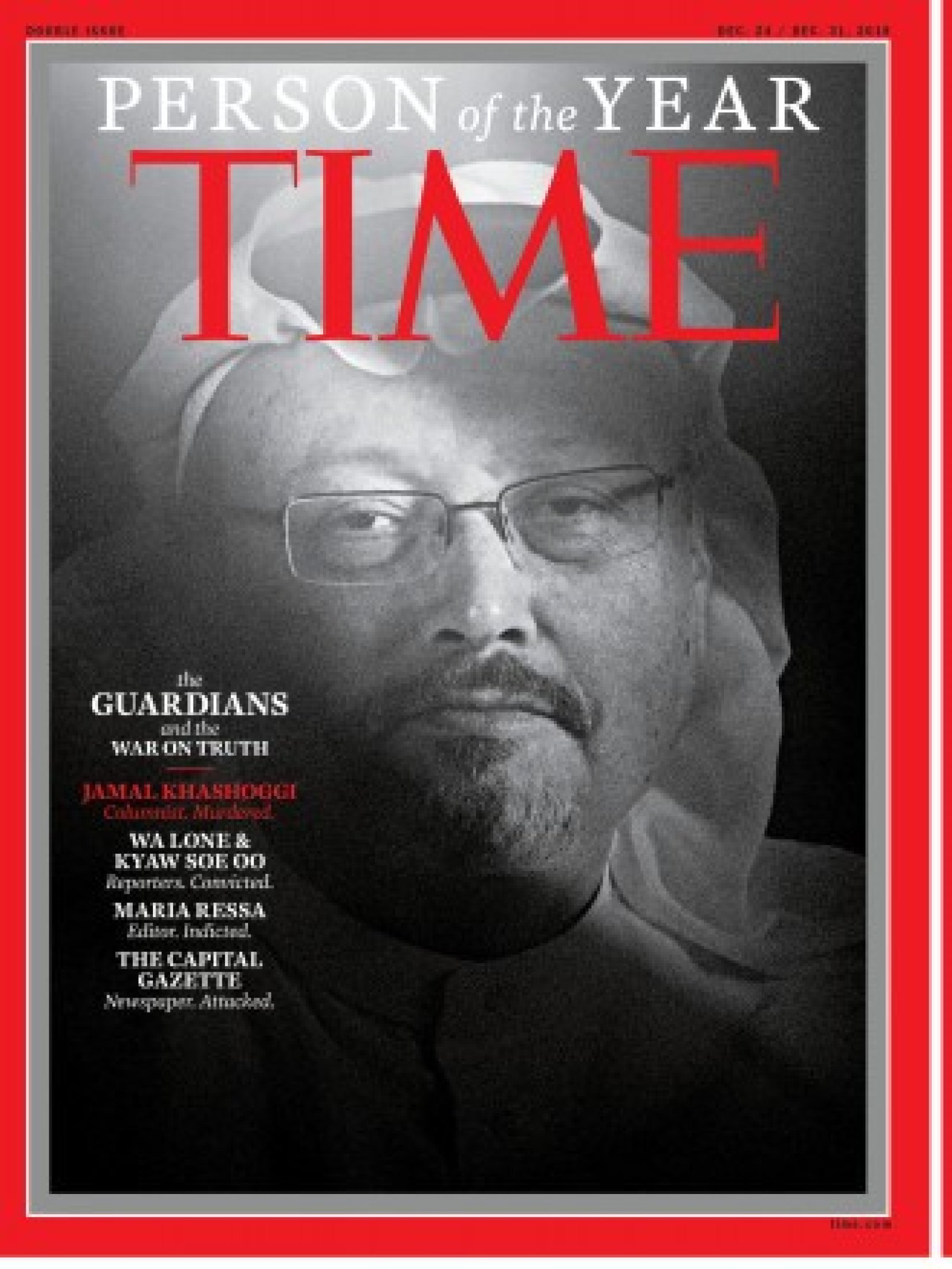 „За поемането на големи рискове в преследването на големи истини, за несвършеното, но съществено преследване на факти, които имат централно значение за гражданския дискурс, за смелостта да говорят Пазителите – Джамал Кашоги, Capital Gazette, Мария Реса, Уа Лон и Кяу Сое О, са Личност на годината на Time за 2018 г.“, съобщи в комюнике главният редактор и главен изпълнителен директор на изданието Едуард Фелсентал.