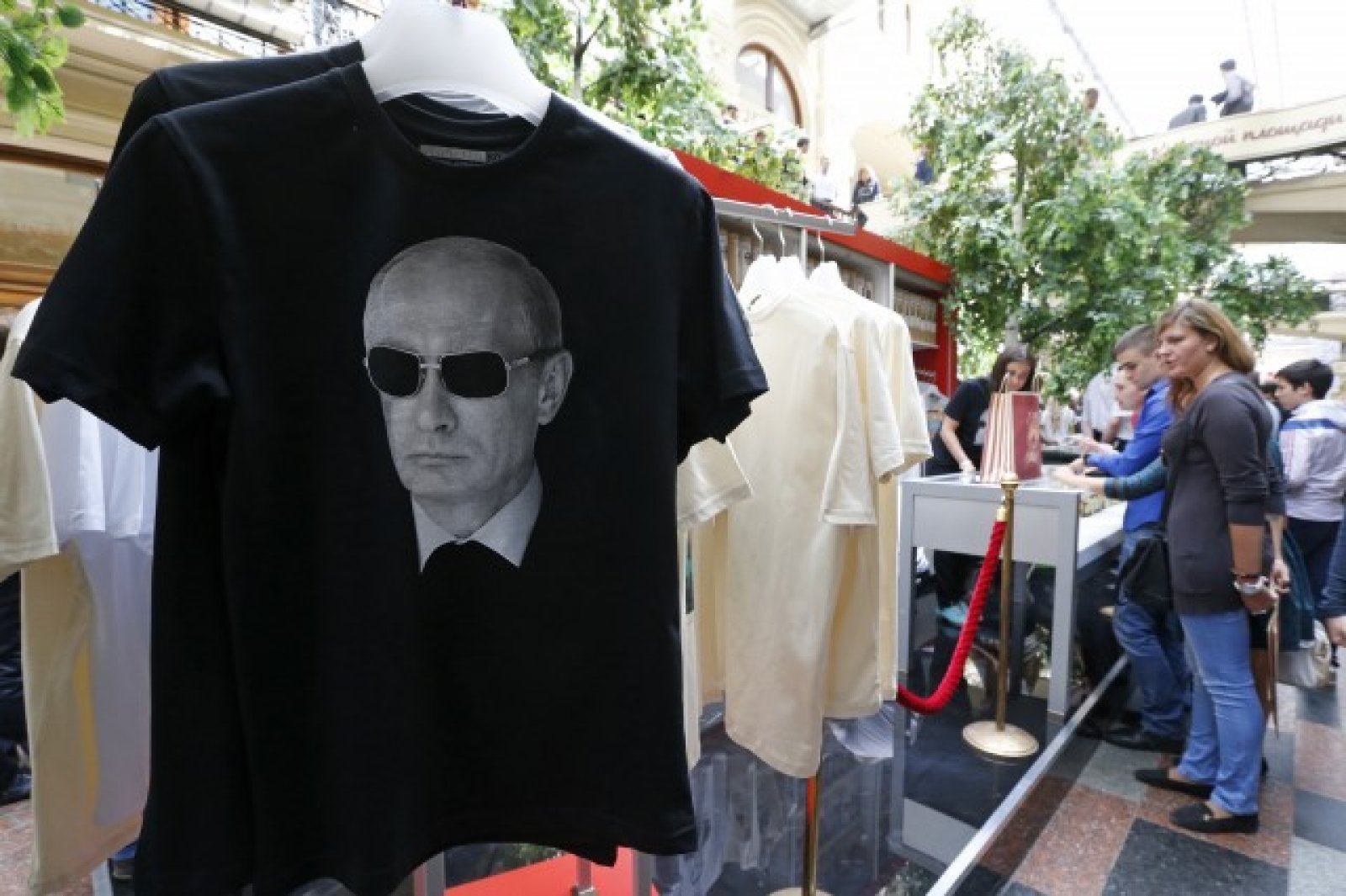 Тениски с лика на Владимир Путин в магазин в централната част на Москва, Снимка: Ройтерс