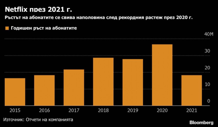 Въпреки това компанията беше сериозно наказана на фондовата борса. В следборсовата сесия цената на акциите се срина с 20% до малко под 407 долара. Анализаторите очакваха много по-силен ръст, след като през 2020 г., първата година на пандемията, Netflix се възползва силно от блокиранията в света.