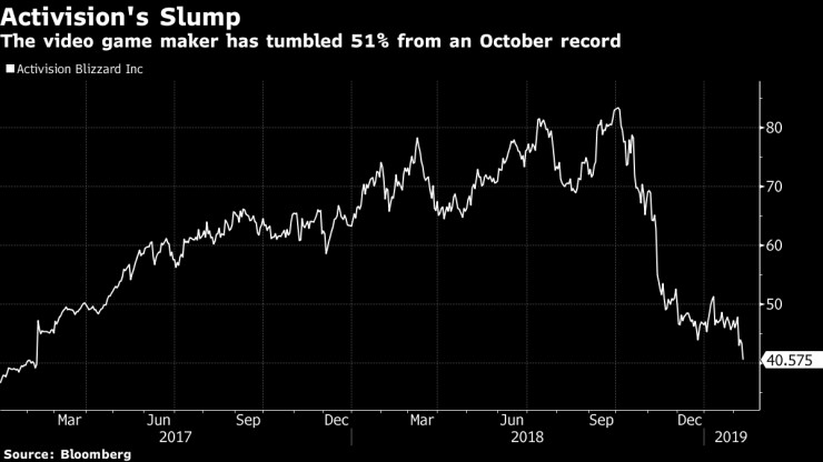 Activision Blizzard очаква печалба на акция за първото тримесечие от 20 цента - по-малко от половината от това, което Wall Street очаква, при приходи от 1,18 млрд. долара. Консенсусната прогноза на Refinitiv е за очаквана печалба на акция от 46 цента при приходи от 1,45 млрд. долара за първото тримесечие на 2019 година. За цялата година се очаква печалбата да е 2,10 долара на акция при приходи от 6,3 млрд. долара. За сравнение – анализаторите очакват печалба от 2,54 долара при приходи от 7,25 млрд. долара.