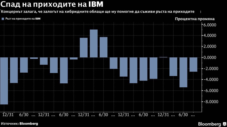 Приходите от продажби са паднали с 2,6% до 17,6 млрд. долара за трите месеца, приключващи на 30 септември, се казва в изявление от базираната в Армънк компания. Това е малко по-добър резултат от прогнозите на анализаторите за 17,5 милиарда долара. Спадът на приходите се дължи на звената за техническа поддръжка Global Business Services и Global Technology Services, където се помещава бизнесът, който ще бъде отделен. Тези две подразделяни отчитат намаления съответно с 4,7% и 3,6%. Междувременно общите облачни приходи се увеличават с 19% до 6,0 млрд. долара, водени от Red Hat, който отбеляза ръст от 17% в приходите. IBM публикува предварителни резултати по-рано този месец, когато обяви отделянето.