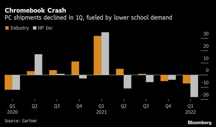 Конкурентният производител на персонални компютри Dell Technologies миналата седмица отчете резултати, които надминаха прогнозите. „Разликата е в зависимостта от Chromebook. Dell не е толкова изложена на влиянието на Chromebook, докато HP е“, коментира Уо Джин Ху от Bloomberg Intelligence. HP е по-зависима и от потребителския пазар, който може да бъде засегнат от макроикономически притеснения като инфлацията, коментира Ху.