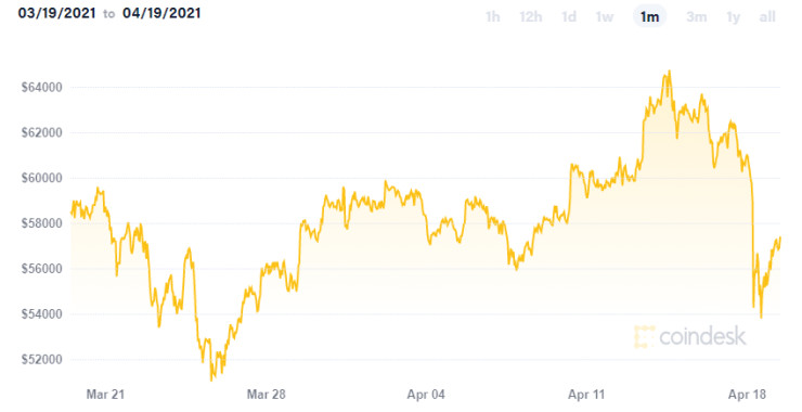 В неделя цената на най-голямата по пазарна капитализация криптовалута достигна триседмично дъно, като само в рамките на 15 минути се понижи от около 60 хил. долара до малко над 52 хил. по време на азиатската търговия. Причината не бе съвсем ясна, но може би е заради слуховете, че САЩ планират глоби за няколко финансови институции за пране на пари с криптовалути, съобщава CoinDesk.