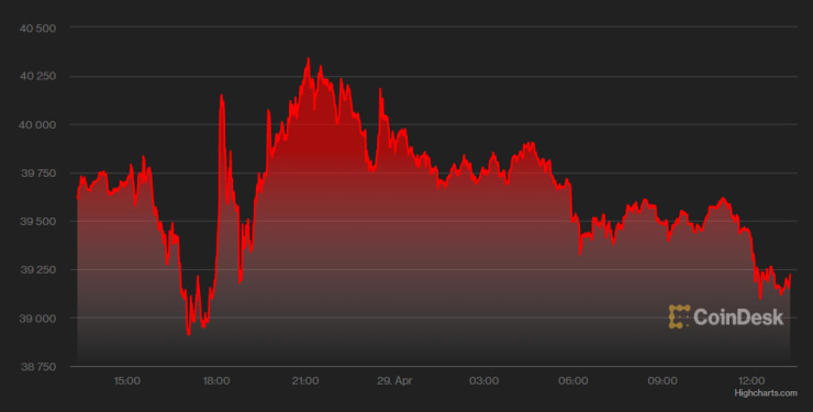 Стойността на най-голямата криптовалута по пазарна капитализация бе на ниво от около 39 500 долара през по-голямата част от първата половина на деня, но по-късно премина осезаемо на територията на пониженията.