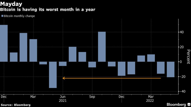 Въпреки ръстовете биткойнът е назад с 21% за месеца, което е и най-лошото му месечно представяне от година насам, след като предходната седмица кризата със стейбълкойна TerraUSD (UST) донесе проблеми за почти цялата криптоекосистема.