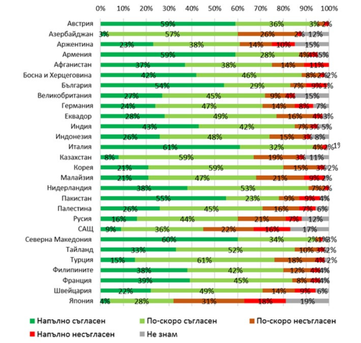 Това показва експресно изследване на международната Асоциация „Галъп интернешънъл” във връзка с коронавируса, в което взеха участие близо 25 хиляди души в 28 държави по целия свят чрез анкета лице в лице, телефон или онлайн, съобщиха социолозите от българския й офис.