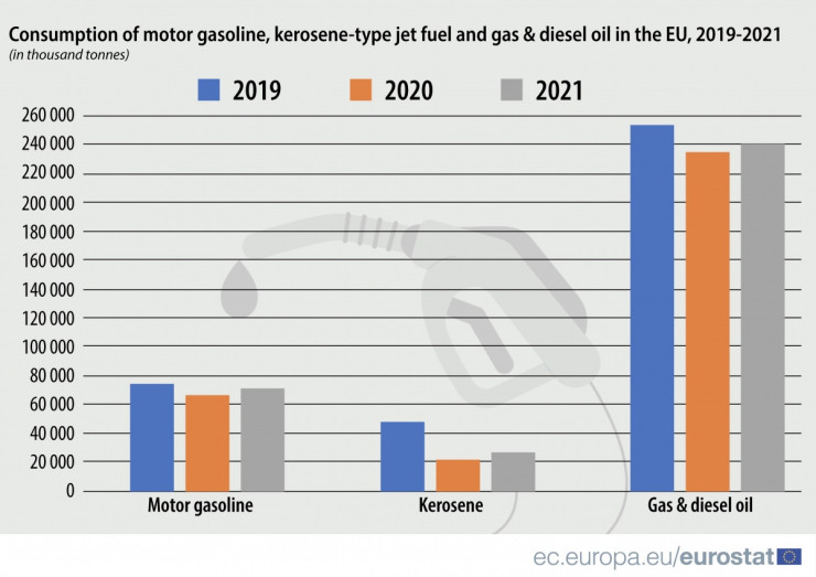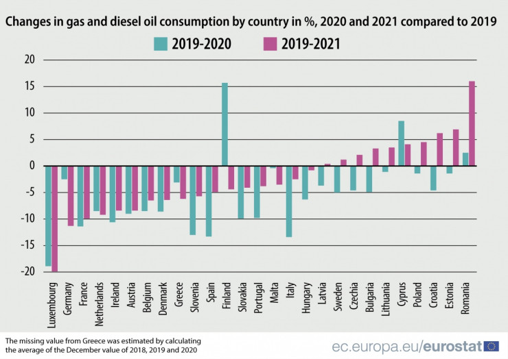 През 2020 г. потреблението на газ и дизелово гориво в ЕС е спаднало със 7%, особено в Люксембург, Италия, Испания и Словения. Само във Финландия, Кипър и Румъния потреблението е по-голямо от 2019 г. През 2021 г. общото потребление в Евросъюза се е увеличило, но все още е под нивата от 2019 г. с 6 на сто.