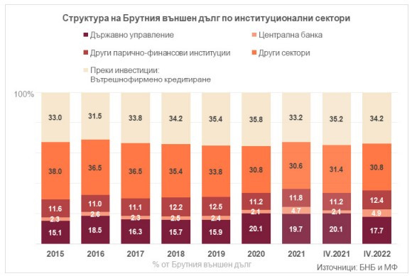 То е с най-значителен дял в структурата на външния дълг – 34,2% към края на април при 35,2% година по-рано.