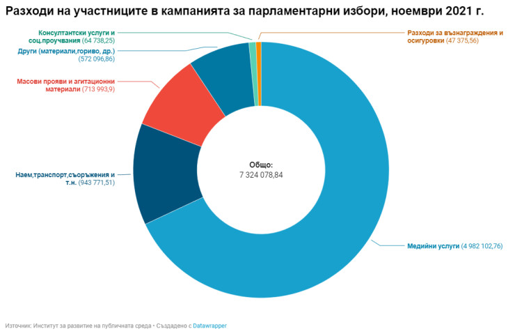 На последните парламентарни избори от 14 ноември миналата година политическите формации са платили 7,3 млн. лв. разходи. Това показват данни на Института за развитие на публичната среда.