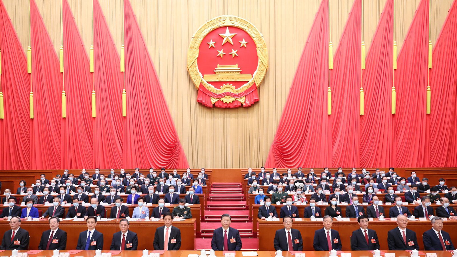 Народното събрание в Пекин приключи в понеделник с ритмични ръкопляскания от страна на 2947 делегати. От едно емпоре звучи китайският национален химн, изпълняван от повече от сто духови музиканти от Музикалния корпус на Народноосвободителната армия в зелени униформи.