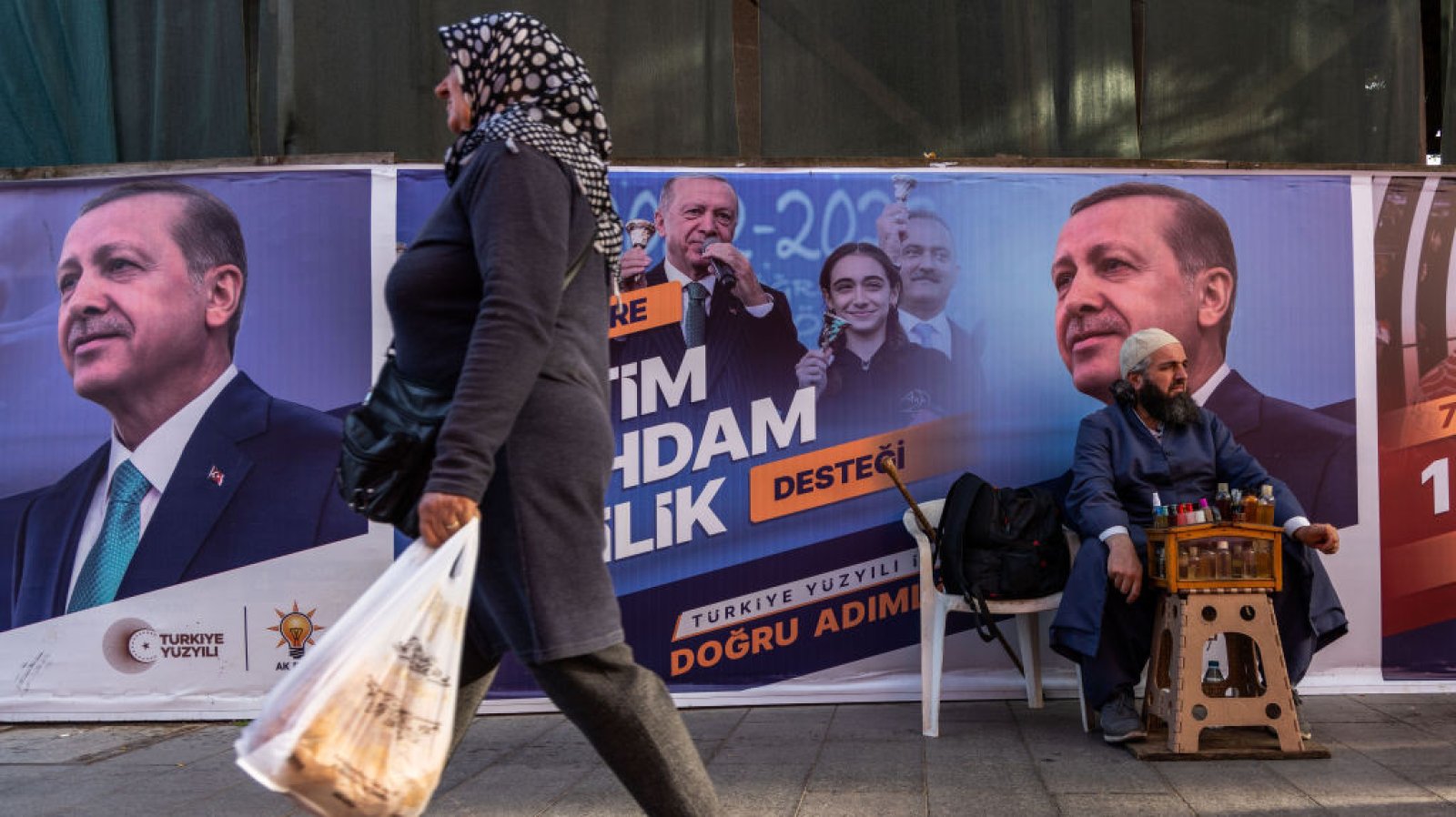 Плакати на Ердоган и конкурента му Кемал Кълъчдароглу преди изборите за президент на 14 май. Снимка: Aziz Karimov/Getty Images