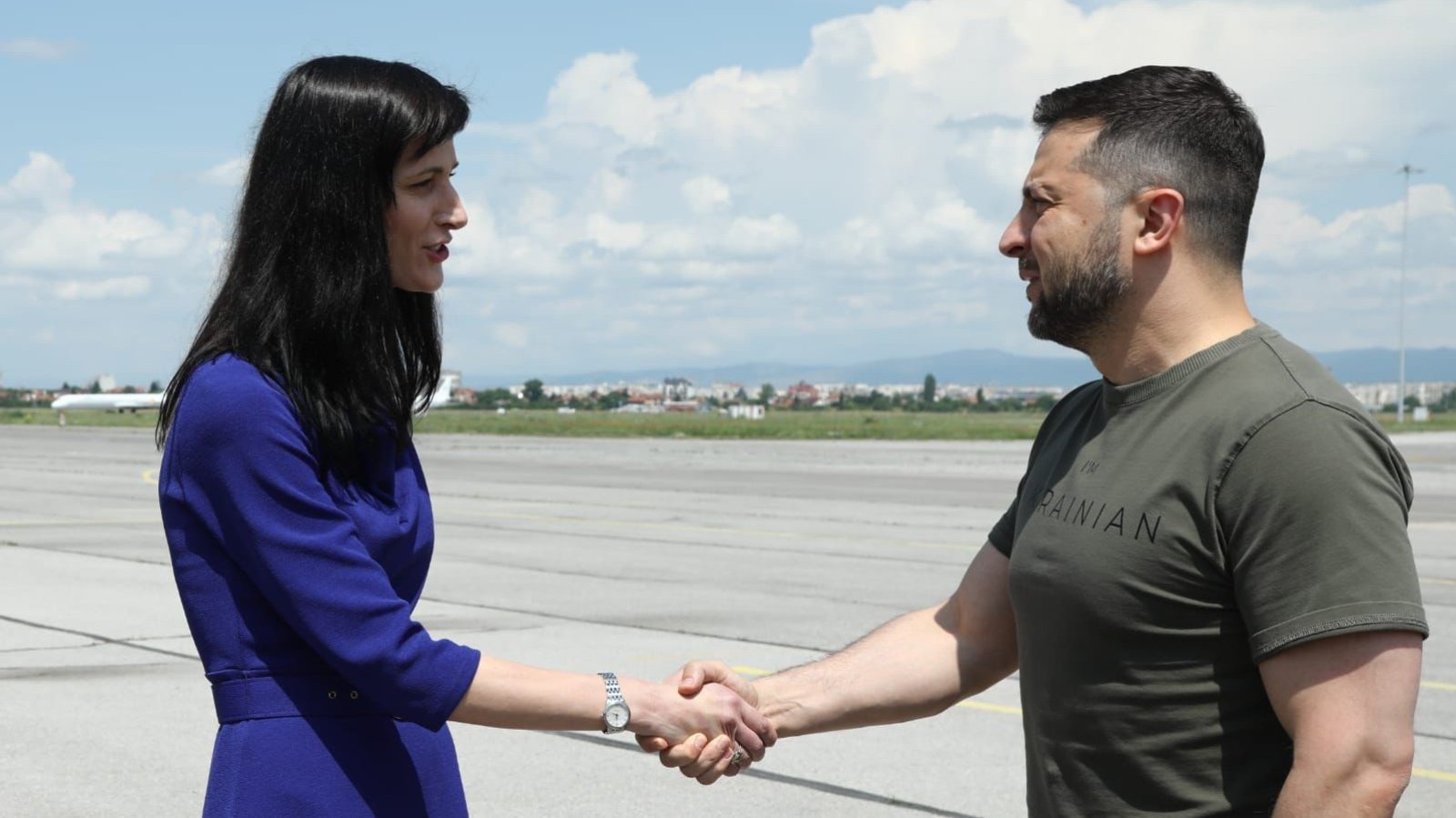 Вицепремиерът и министър на външните работи Мария Габриел посрещна президента на Украйна Володимир Зеленски при кацането му в София. Това стана ясно от публикация на Габриел във Facebook.