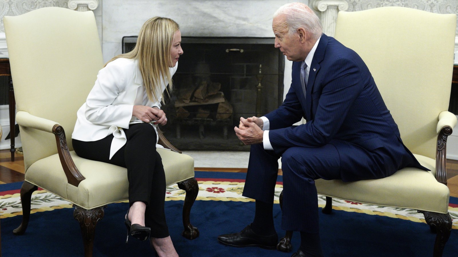 „Отношенията ни са силни. Те са отвъд отделните правителства и остават стабилни независимо от техните политически цветове. Знаем кои са приятелите ни в тежки времена“, заяви Мелони в началото на срещата с Байдън в Овалния кабинет.