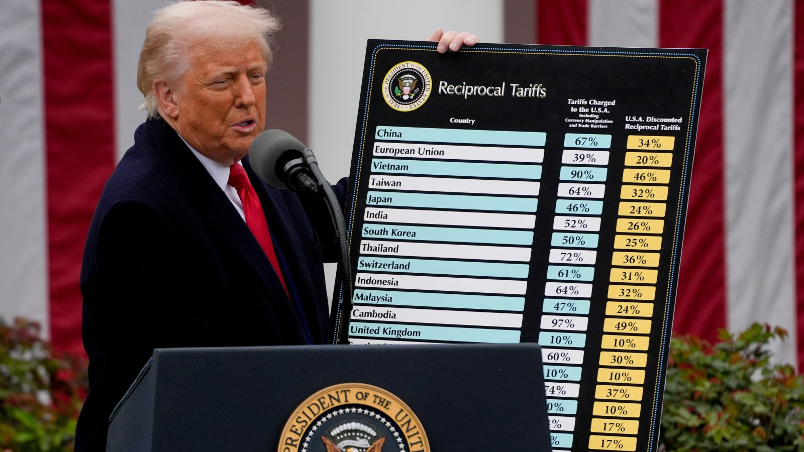 Президентът, който веднъж нарече думата тарифа „най-красивата дума в речника“, по-рано заяви, че реципрочните му планове са ход за изравняване на като цяло по-ниските мита в САЩ с тези на други страни и да противодейства техните ограничения на търговията, които поставят в неблагоприятна позиция износа на САЩ.