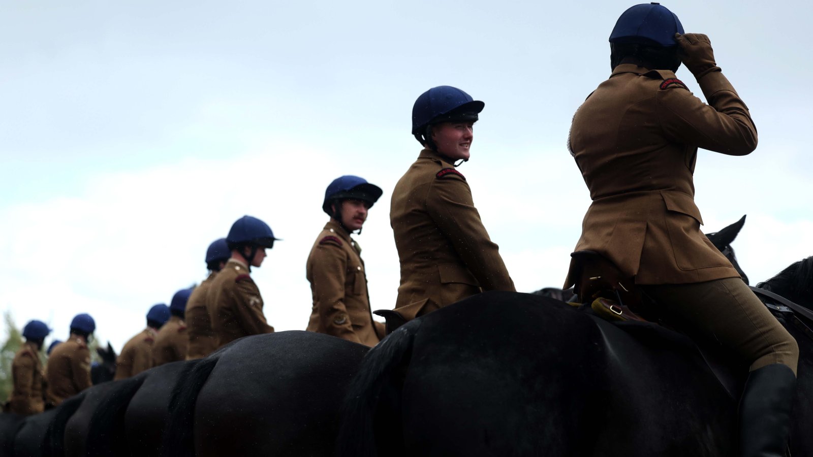 Войници на коне в казармата Комбърмиър в Уиндзор, Великобритания. Те се подготвят за шествието с карети преди държавното посещение на президента на САЩ Доналд Тръмп.