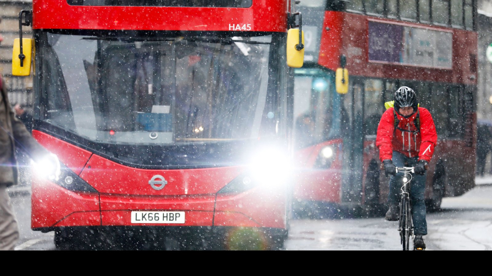 Пътници преминават по "Лондон Бридж" в снега в Лондон, Великобритания, в четвъртък, 1 март 2018 г. Снимка: Luke MacGregor/Bloomberg