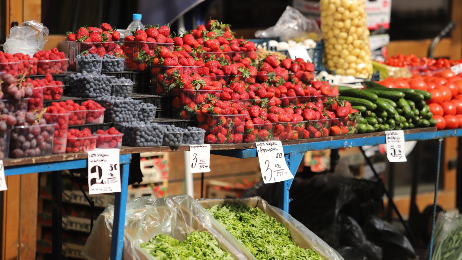 Междувременно данни на Държавната комисия по стоковите борси и тържищата (ДКСБТ) сочат, че цените на основни хранителни продукти продължават да се повишават и тази седмица, а тези на повечето плодове и зеленчуци на борсите у нас поевтиняват, съобщава БТА.
