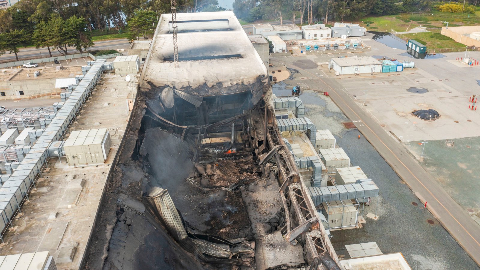 Дим се издига по време на пожар в съоръжение за съхранение на енергия чрез стационарни батерии на Vistra Corp. в Мос Ландинг, Калифорния. Пожарът избухна в комплекса Moss Landing, едно от най-големите съоръжения за съхранение на енергия в света, което наложи евакуация на жителите в района.