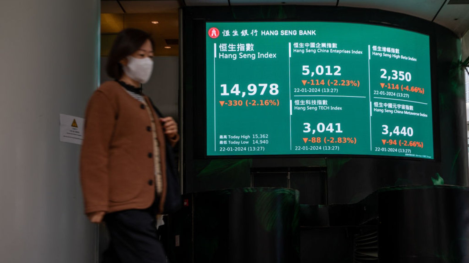 Хонконгският индекс Hang Seng спадна с 1,13% до 16 155,61 пункта, а показателят Hang Seng Tech изтри 2,7% от стойността си до 3253,09 пункта.