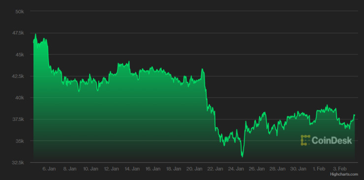Цените на водещите криптовалути до голяма степен бяха блокирани в търговия в диапазон (стратегията, при която се купува на линията на подкрепа и се продава на линията на съпротива – бел. ред.) през последните няколко седмици. Проблемът им с това да пробият бе подхранван от поевтиняването на т. нар. акции на растежа и други рискови активи като цяло на фона на притесненията за ефекта от евентуално увеличение на лихвите от Федералния резерв и тенденцията за затягане на паричната политика като цяло.