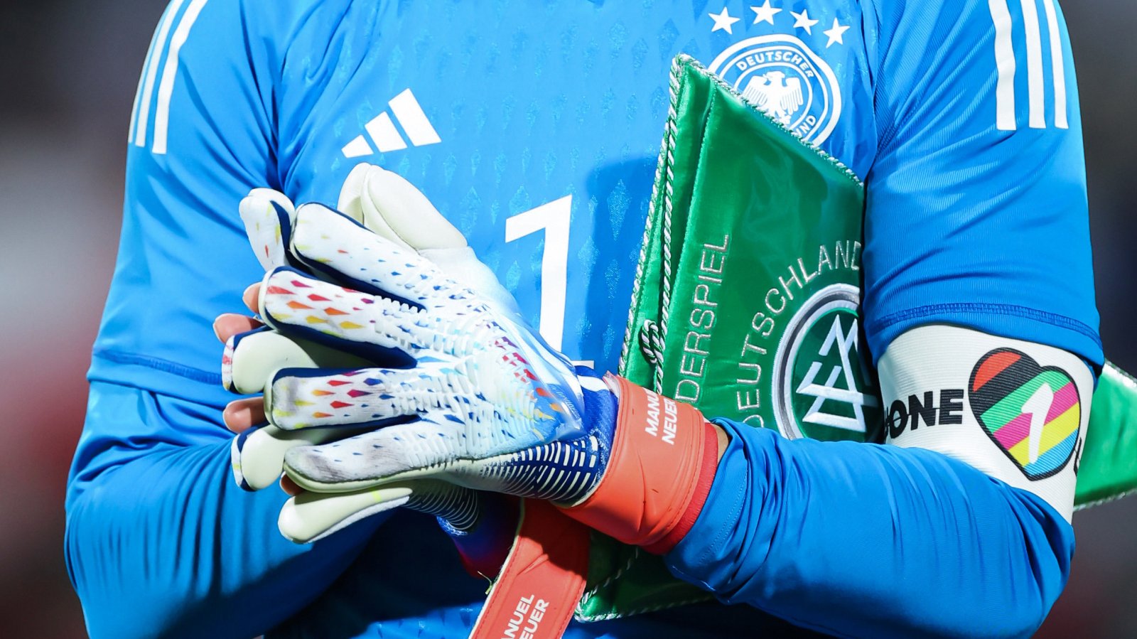 Специалната капитанска лента One Love. Снимка: Sebastian Gollnow/dpa