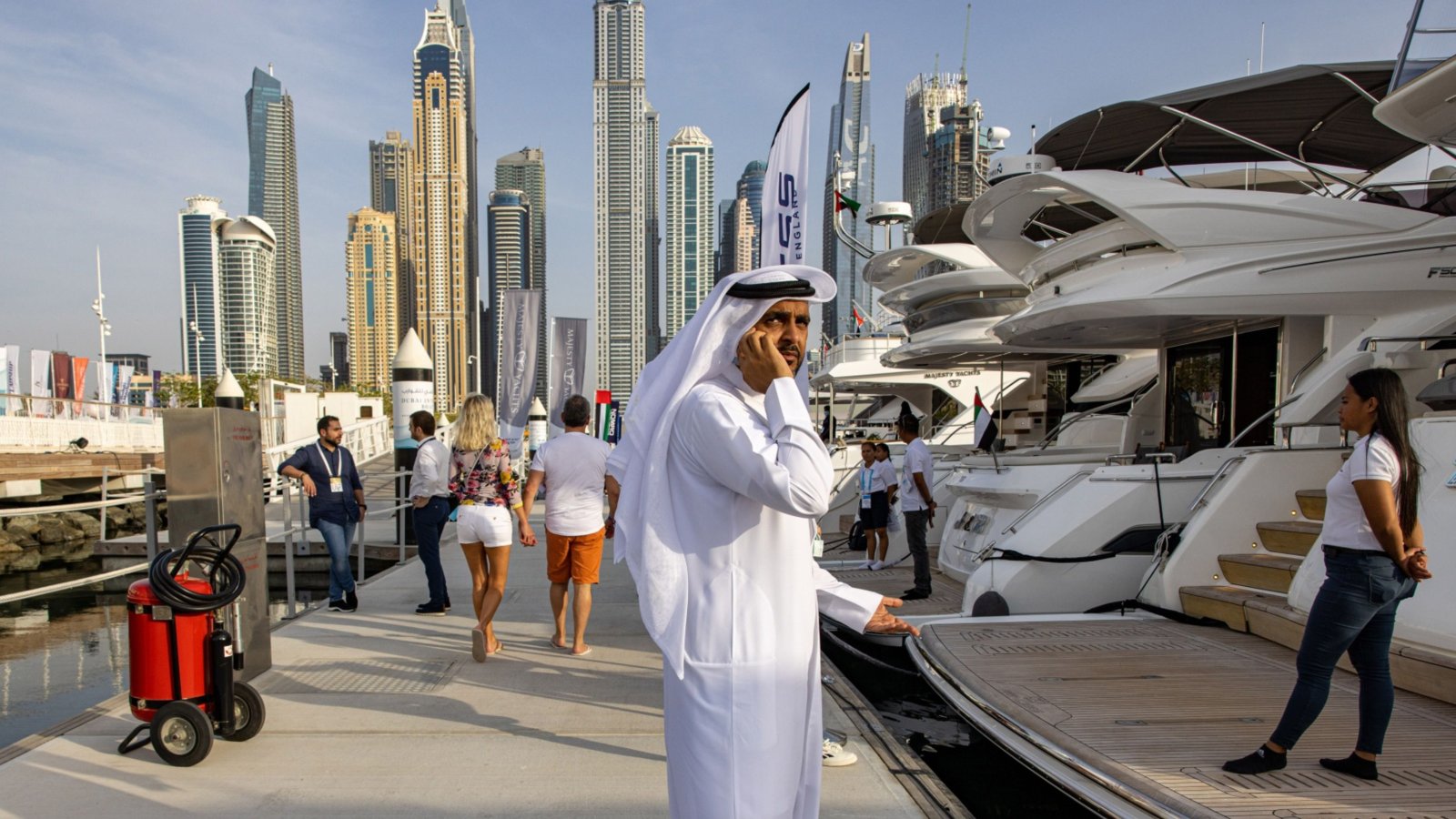 Приходите на Дубай не идват само от хотели и ресторанти. Посетителите на емирството могат да наемат суперяхти, струващи десетки хиляди долари на вечер, за да гледат мачове, докато плават през Персийския залив.