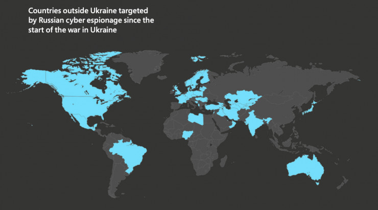 От Microsoft са открили руски опити за проникване в мрежата на 128 организации в 42 държави извън Украйна. Въпреки че Съединените щати са цел номер едно на Русия, тази дейност е насочена приоритетно и към Полша, където се координира голяма част от логистичната доставка на военна и хуманитарна помощ. Руската дейност е насочена и към балтийските държави, а през последните два месеца се наблюдава увеличаване на подобна дейност, насочена към компютърни мрежи в Дания, Норвегия, Финландия, Швеция и Турция. Наблюдава се и увеличаване на подобна дейност, насочена към външните министерства на други държави от НАТО.