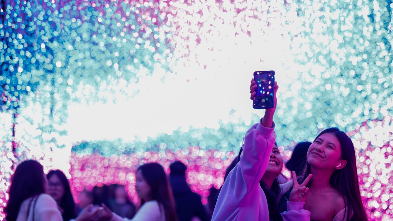 Хора си правят снимки под коледната украса в Тайван.