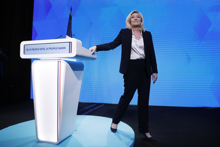 A Марин льо Пен вече се бе прицелила в Макрон. Тя косвено го определи като кандидат на богатите. „От вашите избори зависи колко място искате да отделите на парите в нашето общество", каза Льо Пен. Тя искала да възстанови Франция и да я направи по-демократична. Но мълчи за европейските си планове. Неотдавна в ефира на телевизионния канал TF1 обяви, че европейското знаме ще липсва на официалния ѝ портрет по време на мандата. Тя не се стремяла да стане „управител на европейска провинция", а държавен глава на Франция. За разлика от преди пет години, нейната програма не включва план за извеждане на Франция от ЕС и премахване на еврото. Вместо това тя предвижда курс на национално самоутвърждаване като в Полша и Унгария.
