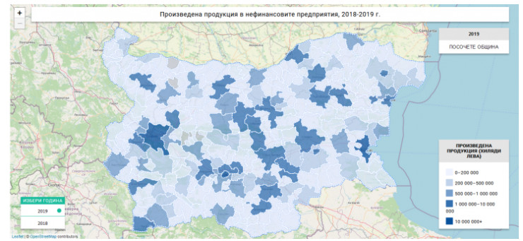 Общо 194 млрд. лв. е стойността на произведената продукция от нефинансовите предприятия в страната през 2019 г. Преработващата промишленост продължава да бъде водеща с близо 69 млрд. лв. или 35,5% от произведената продукция от нефинансовите предприятия. Дигиталният сектор обаче е най-динамичният, като информационните и комуникационните технологии отчитат ръст на продукцията от 17% през 2019 г., достигайки до 12,4 млрд. лв. или 6,4% от общата стойност. Данните за произведената продукция от нефинансовите предприятия на общинско ниво дават много ясна представа за регионалното разпределение на икономиката, в т.ч. тежестта на големите икономически центрове и оформянето на тяхната периферия, пише Петър Ганев от Института за пазарна икономика.