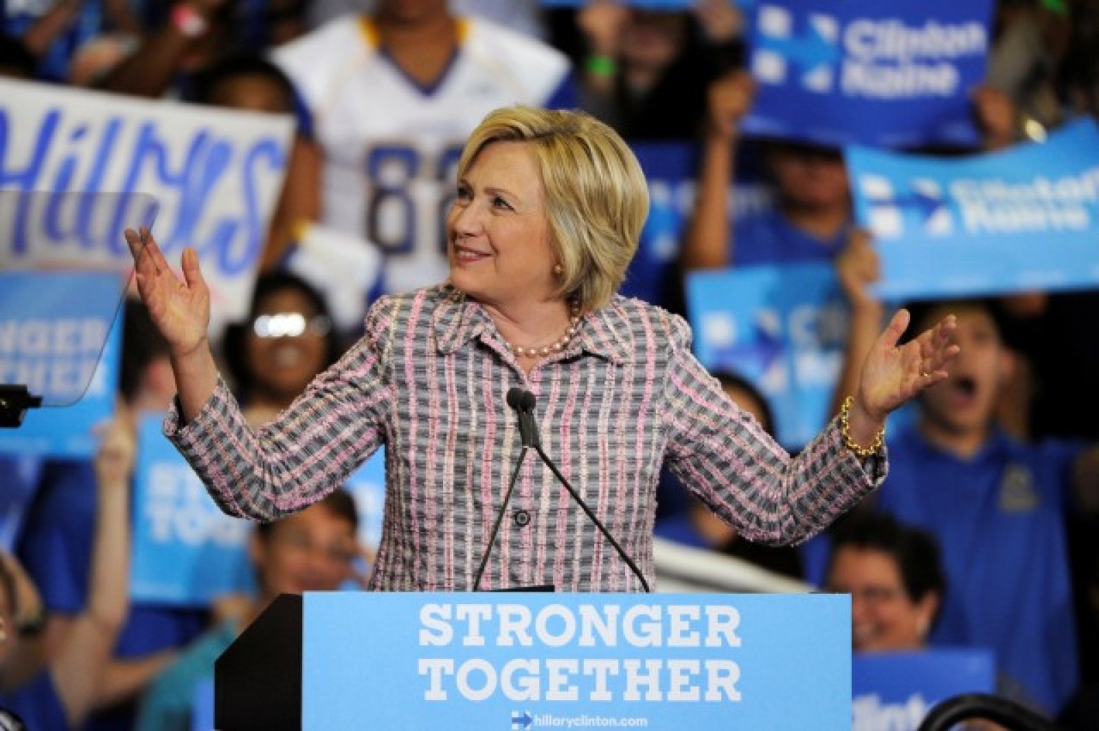 Тя обещава нови решения на проблемите на нацията, но твърди, че те най-лесно ще се постигнат от двама души - от нея и Тим Кейн - които са малко или много професионални политици.