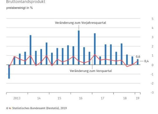 Брутният вътрешен продукт на Германия нарасна с 0,4% през първото тримесечие спрямо предходното тримесечие.