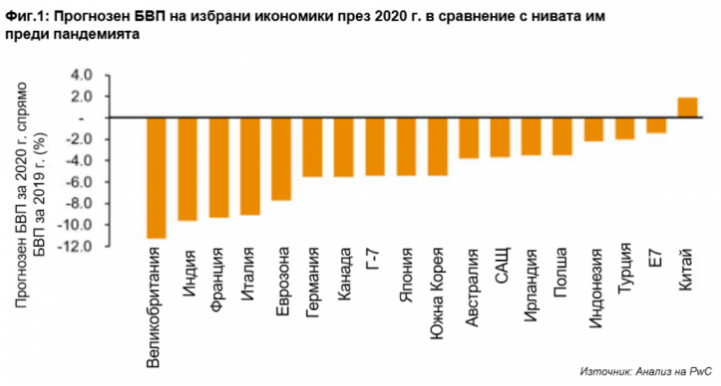 „Макар че добрата новина е, че до края на 2021 г. или началото на 2022 г. глобалната икономика вероятно ще се върне към нивата на производство отпреди кризата, отличаваща характеристика на голямото възстановяване е, че то ще бъде неравномерно в различните държави, сектори и нива на доходи. Например китайската икономика вече е по-голяма от нивото си преди пандемията, но други напреднали икономики - особено тези, силно базирани на услугите като Великобритания, Франция и Испания или тези, фокусирани върху износа на стоки и оборудване, като Германия и Япония, едва ли ще се възстановят до нивата си от преди кризата до края на 2021 г.”, коментира Барет Купелиан, старши икономист в PwC.