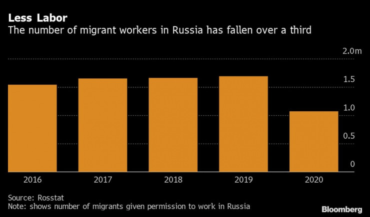 Строителните компании са сред най-силно засегнатите от недостига на работна ръка, предизвикан от пандемията, която намали притока на имигранти, най-вече от Централна Азия, към страната. Това на свой ред увеличава заплатите и разходите за изпълнението на проекти. На фона на затегнатия граничен контрол руските власти обмислят ваксинирането на имигранти работници, за да може да се стимулира икономиката.