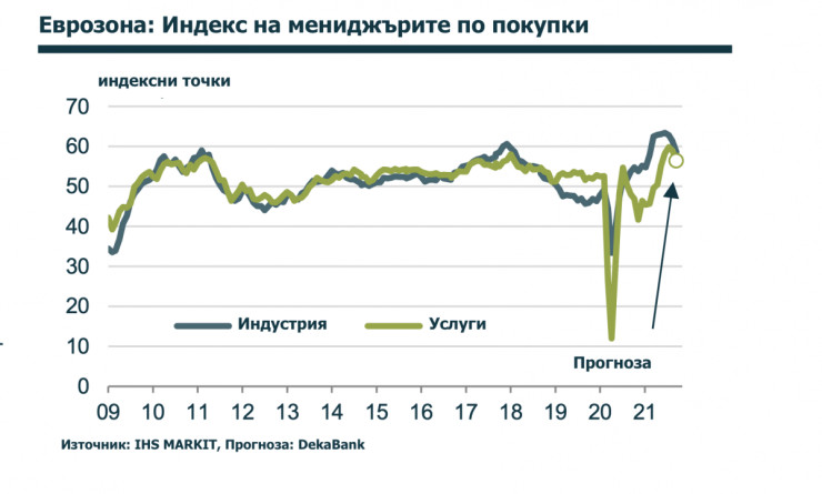 Това ще бъде намекнато и от индекса на мениджърите по закупуване на EWU през октомври. Това се отнася както за подиндекса на индустрията, така и за подиндекса на сектора на услугите. Опасенията относно развитието на коронвируса вече са отхвърлени. Значителните проблеми във веригата на доставки сега се очаква да оказват сериозно влияние върху европейския растеж.