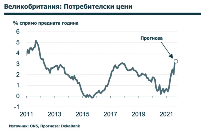 От четвъртото тримесечие нататък повишаването на цените на газа и електроенергията трябва да осигури допълнителен тласък и да позволи инфлацията да се повиши до 4%. Дори ако тук сработват много временни ефекти, дългосрочните инфлационни очаквания на финансовите пазари са се увеличили значително от началото на годината. А Английската централна банка е подложена на нарастващ натиск да действа.